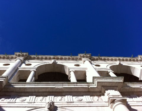 in alto: foto della basilica palladiana scattata oggi, col cielo blu